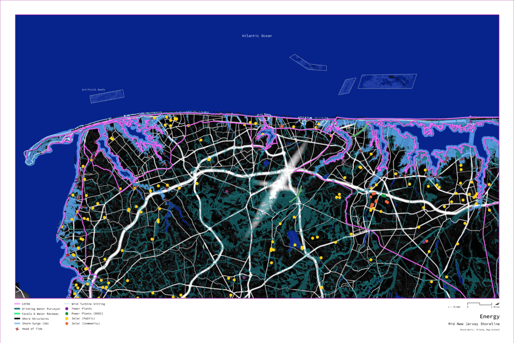 Our base maps explored energy and coastal structures at various points along the New Jersey shoreline.